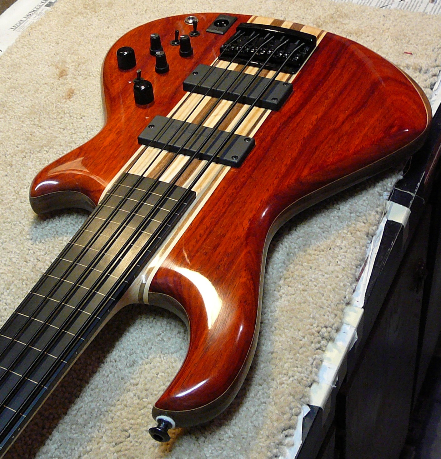 Model S1, lined fretless with Padauk facings and Walnut core.