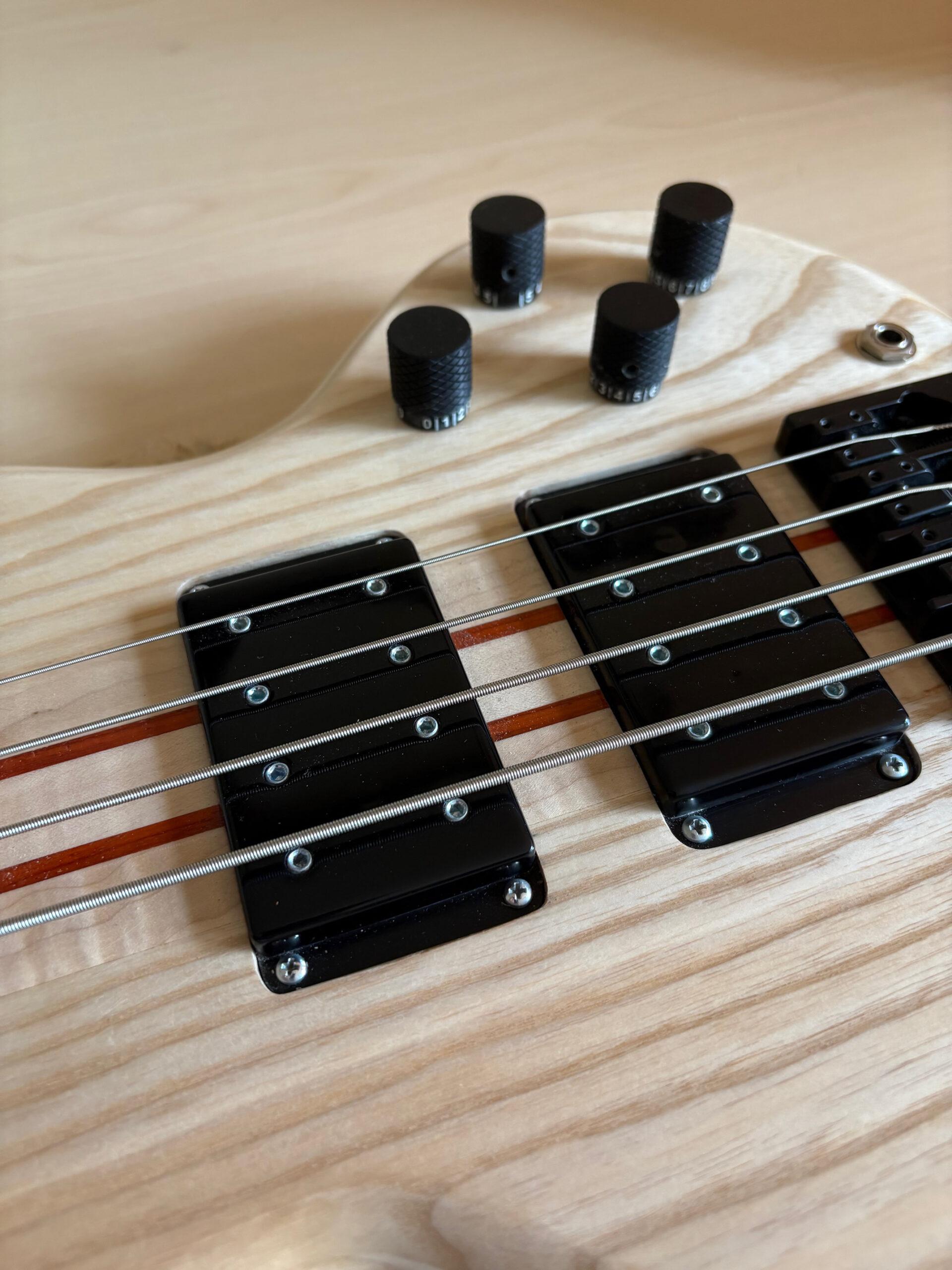 - 4 string fretless – Ebony fretboard – Ash body natural – high gloss finish.